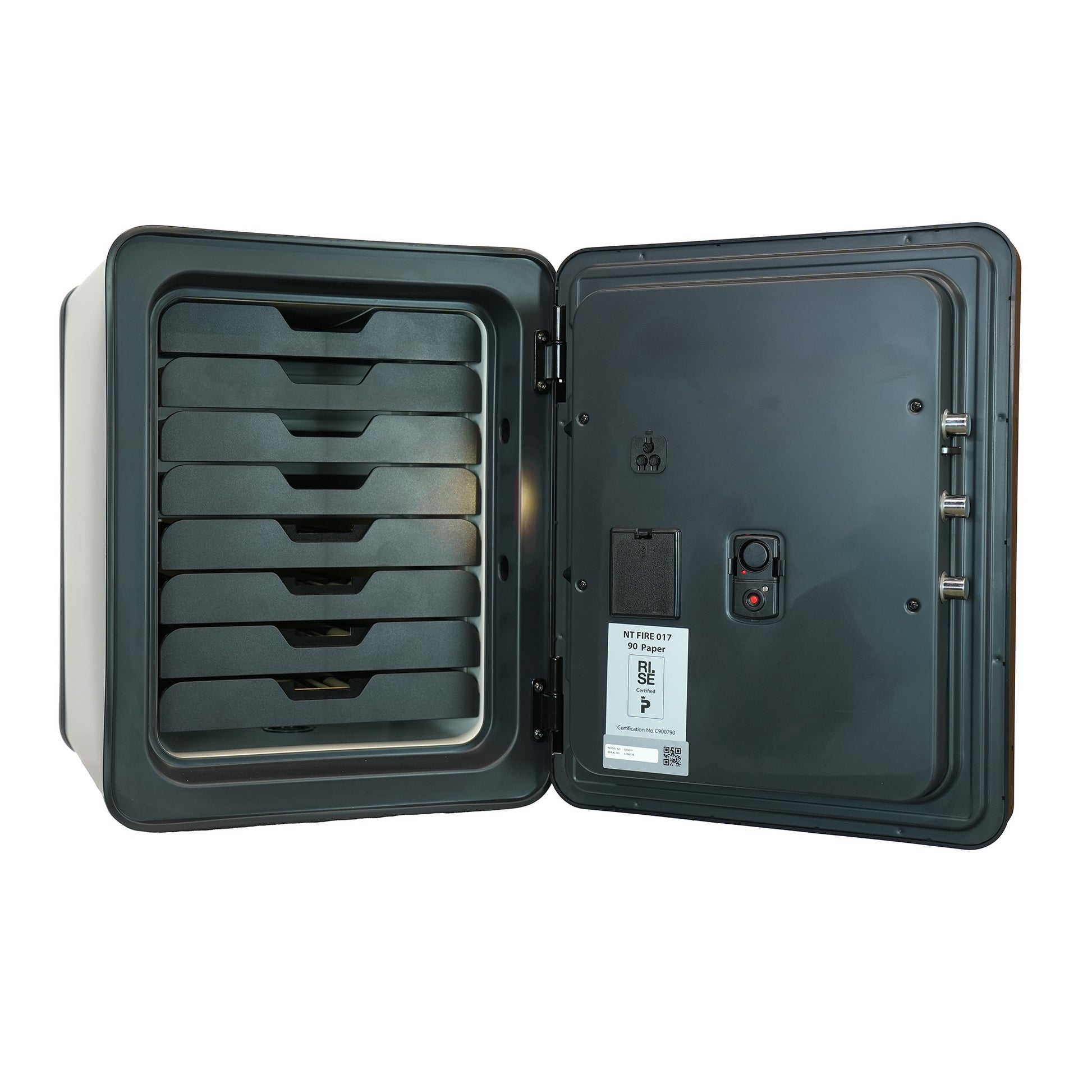 Independently certified to NT 017 – Paper 90 by the RISE Research Institute of Sweden, Cocono safes are proven to protect for 90 minutes—keeping the interior safely below the temperature where paper begins to char.